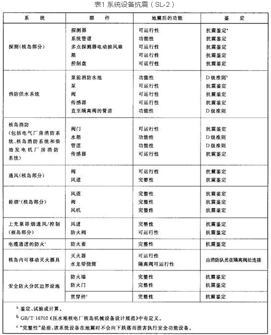 核電廠的火災(zāi)自動(dòng)報(bào)警系統(tǒng)需滿足相關(guān)質(zhì)保等級(jí)的要求并且系統(tǒng)在運(yùn)行階段要接受定期試驗(yàn)檢查,另外,所有設(shè)備應(yīng)經(jīng)過(guò)抗震試驗(yàn)鑒定并能承受極限安全地震(SL-2)荷載,且保證其可運(yùn)行性(見(jiàn)下表1)。